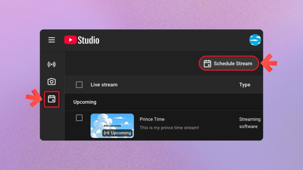 Manual method means scheduling a new stream in YouTube Studio, configuring the settings and copying your stream key from YouTube Live Studio to Upstream. Then all you need to do is to start the broadcast on Upstream.