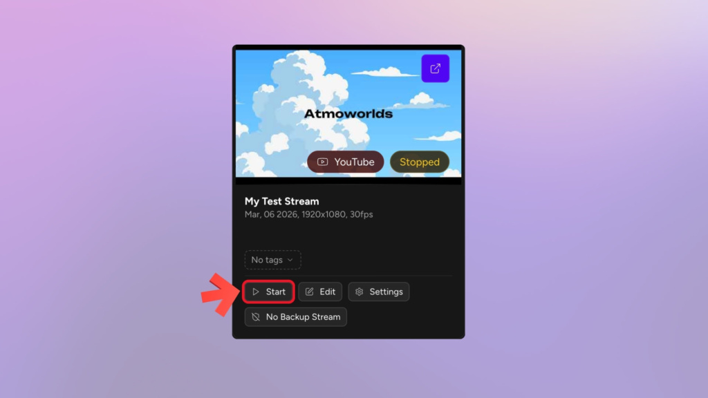 - Go Live: On your Stream Thumbnail click “Start Stream”.
