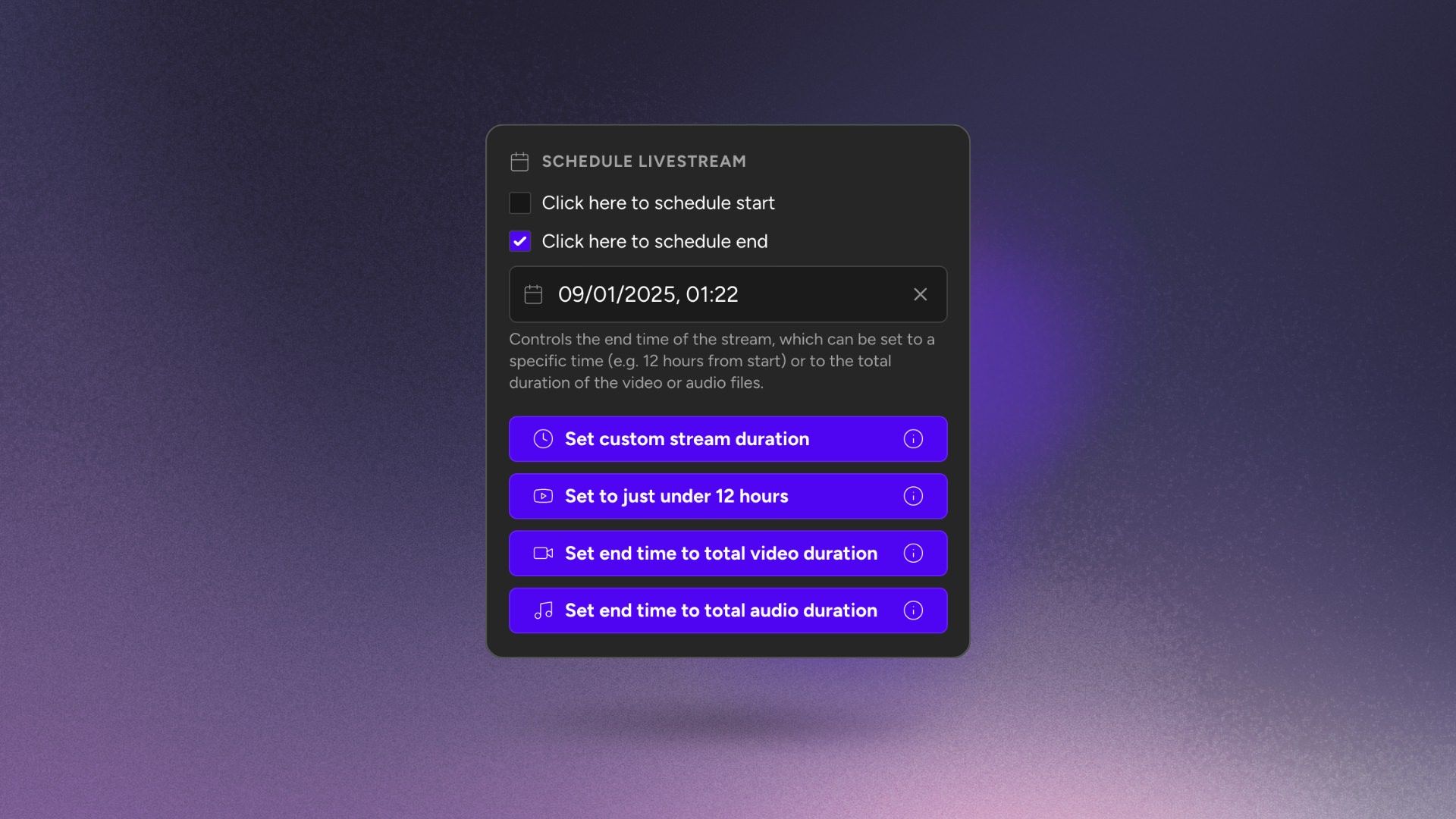 The all-in-one enterprise solution for agencies & labels to manage 24/7 Live Streaming on YouTube, Twitch, Kick and any other RTMP destination for the entire talent pool. No technical headaches, just results.