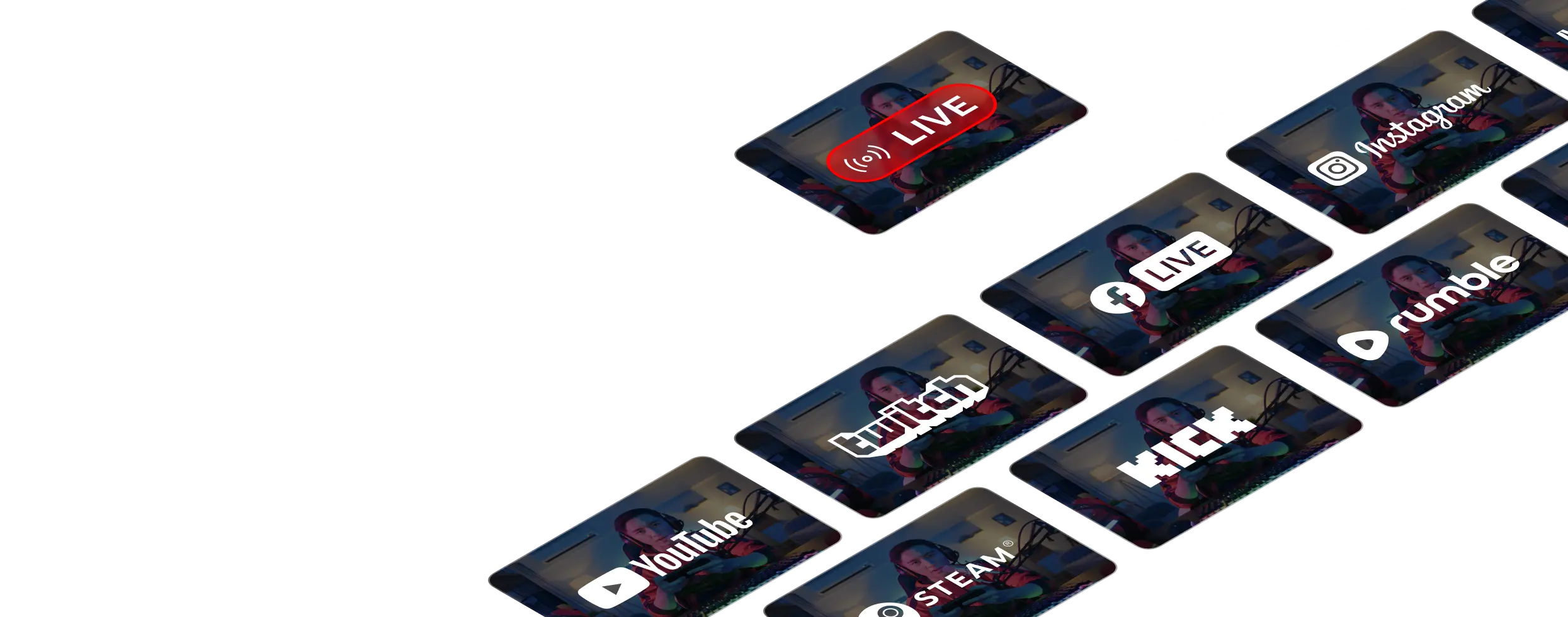 Stream live to YouTube, Twitch, Facebook, TikTok, Kick, Rumble, and any RTMP destination - all at the same time. Reach your entire audience whatever platform they prefer to watch, with support for up to 10 platforms simultaneously.