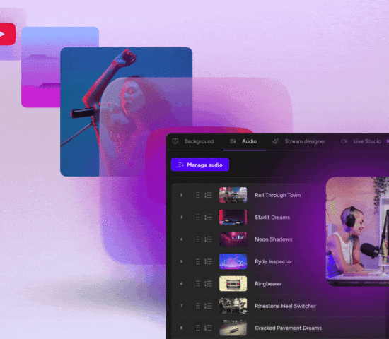 While your playlists play out in the background, you can add elements to make your stream truly come alive. Use animations to make logos or QR codes appear only occasionally. Add audio-reactive music visualisers. Your stream, your rules.