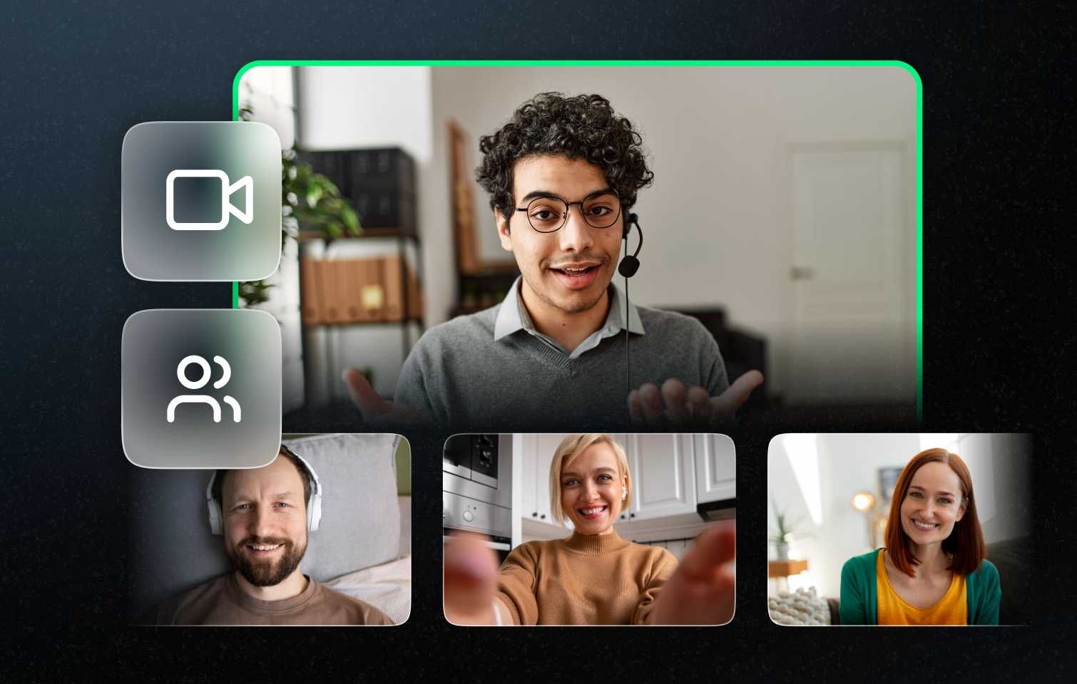 Choose how and where you appear on screen. Corner overlay, full screen, side-by-side, or bottom bar. Position yourself with drag-and-drop and click-and-drag.